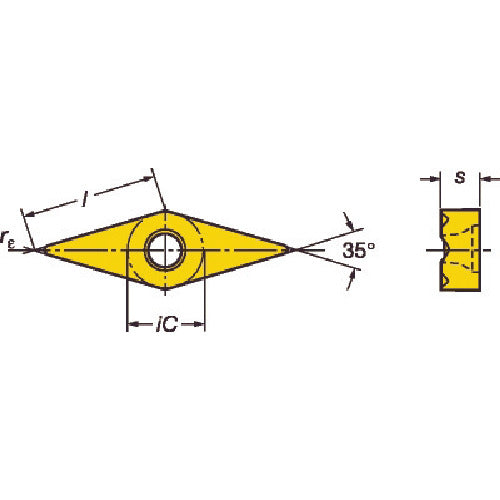 카탈로그 품번:TR-VB1304S01020F 용도:●고경도재 가공용. ●마무리 가공용. ● 모방 가공용. 사양:●적합 피삭재:H●절삭날 유효길이 LE(mm):3.1●내접원 IC(mm):8●두께 S(mm):4.525●코너 반경 RE(mm):0.4●홀 직경 D1(mm):3.4●주 도망각 AN(°):5●코팅:Uncoated●가공 타입:Finishing
