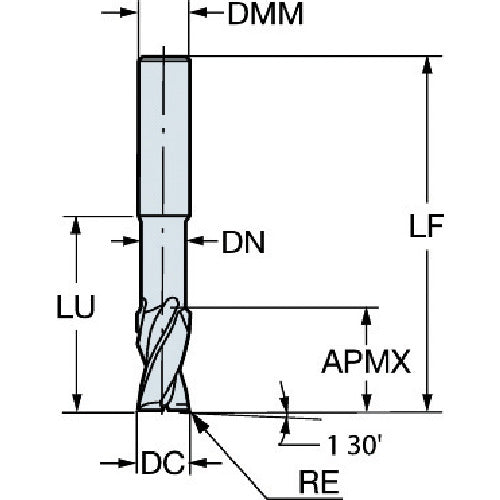 카탈로그 품번:2P121-0600-NC 특징:●알루미늄 합금의 가공으로 최고의 생산성을 발휘하는 솔리드 엔드밀 ●더블 플루트 형상에 의해 강성과 칩 처리성을 양립