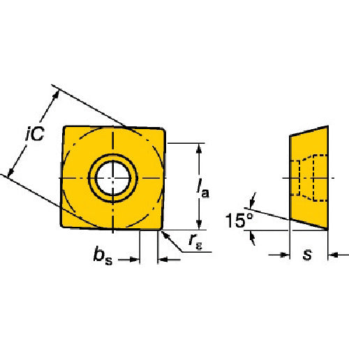 카탈로그 품번:490R-08T304E-ML 특징:●4 코너 어깨 절단 커터용 칩입니다. ● 샤프한 절삭날로 저저항입니다. ● 광범위한 가공 영역과 4 코너 칩으로 공구 교환을 대폭 삭감합니다. 용도: ● 정면 밀링, 어깨 깎기, 홈 가공용. ● 양호한 표면 거칠기가 필요한 가공에. ●소형 기계로의 가공에. 사양 : ● 마음대로 : 오른쪽 ● 칩 사이즈 : 08 ● iC : 8.5 ● s : 3.3 ● re : 0.4 ● 최대 절입 : 5.5 ● 반경 방향 최대 취부 : 2 ● bs : 1.5