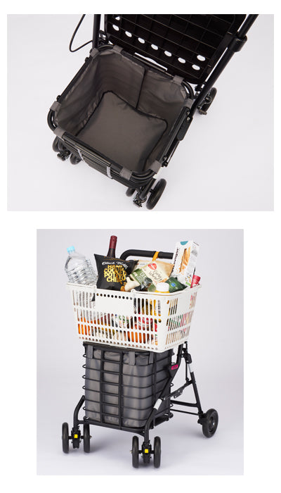 ●사이즈/폭 50×안길이 58×높이 82~90.5(4단계)cm, 접을 때:안길이 41×높이 88.5cm, 좌면:폭 31×안길이 31cm, 좌면 높이:49cm ●바퀴 사이즈/전륜 13×후륜 13 cm ●무게/4.55kg ●재질/프레임:알루미늄・플라스틱 ●가방 용량/약 23 L ●적재 하중/12kg ●최대 사용자 체중/100kg ●표준 기능/접이식, 3WAY 캐스터(360°・좌우 40°・고정), 수중 브레이크, 주차 브레이크, 좌면, 지팡이・산립 ●생산국/대만 ●SG마크 취득 상품 ・가볍고 컴팩트하게 했기 때문에, 뚜껑이 좌면으로서도 사용할 수 있는 알루미늄 왜건 카트. · 바구니에는 2L 페트병이 그대로 들어갑니다. ・내하중 100kg의 좌면이 붙은 경량 4.55kg의 와이어 카트.