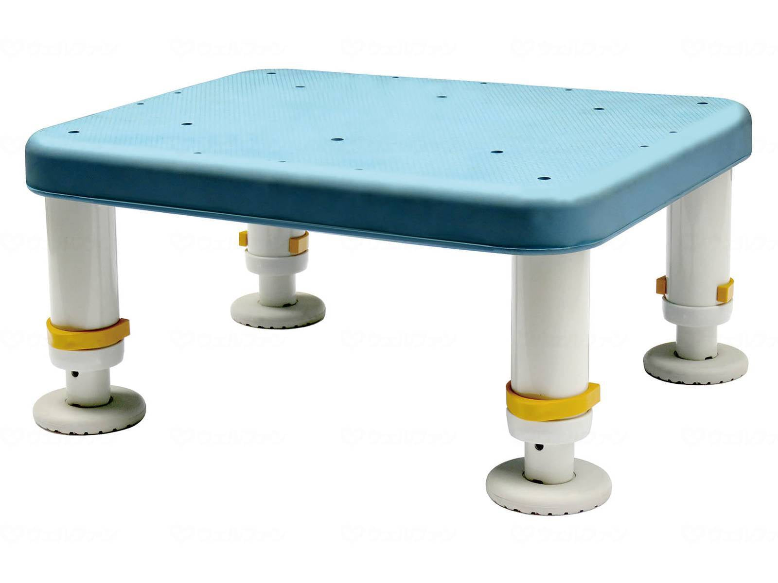 메이커 품번:「SYR15-25」 TAIS:「01115-000100」 사이즈・중량 무게 2.8kg 코멘트 최경량급으로 취급하기 쉽다. 천면은 미끄럼 방지 효과가 높은 다이어컷! ○최소 높이 10 cm부터 구색. ○천면은 고무제로 목욕 매트와 같은 다이어컷 형상. ・다리를 둘 때 미끄러지기 어렵다. ・앉았을 때 엉덩이에 상냥하다. ○욕조에 가라앉는 것만으로 자중으로 흡착(흡반부착). ○천면(고무제)은 방곰팡이 가공. 재질·원재료 재질 ○천판:고무(방곰팡이 가공), 폴리프로필렌 ○다리 고무:엘라스토머 ○프레임・파이프:알루미늄 표준 1대 규격 상세 ○사이즈:폭 30×안길이 40×높이 15~25 cm ○내하중:100kg
