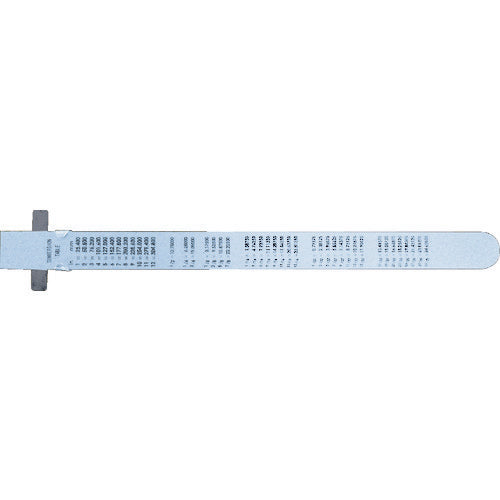 카탈로그 부품 번호 : 13242 특징 : ● 클립이 슬라이드하기 때문에 간단한 뎁스 게이지로 사용할 수 있습니다. ●세폭으로 휴대에 편리합니다. (직척 폭 12mm) ●이면에 인치 환산표 첨부입니다. 용도:●길이의 측정에 사용하는 직척 사양:●전체 길이(mm):160●폭(mm):26●두께(mm):0.5●호칭 치수(mm):150●상단(피치):1mm●하단(피치):1mm ●측정 범위:0~150mm ●길이 : 0mm 420J2) 주의: ● 전기에 닿을 우려가 있는 장소에서는 사용하지 마십시오.