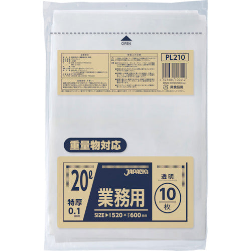 카탈로그 품번:PL210 특징: ●두께가 0.1 mm의 특후 타입으로 찢어지기 어렵고 튼튼합니다. 사양:●세로(mm):600●가로(mm):520●두께(mm):0.1●용량(L):20●색:투명 ●중량물 대응 재질/마무리:●LLDPE