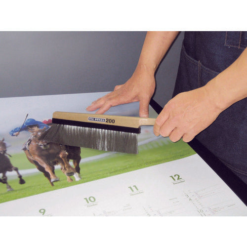 카탈로그 품번:STAC200 특징:●브러시 유효 길이가 크기 때문에 넓은 용도의 제전에 적합합니다. ● 그립 부분에 접지 기능이 있습니다. ●접지선의 접속도 가능합니다. 용도: ● 인쇄 회로 기판, 필름, 종이, 유리 등의 제전 및 먼지 제거. 사양:●전장(mm):350●털길이(mm):50●모폭(mm):10●브러시길이(mm):200●선경(mm):0.07●표면저항치(Ω):10[[의 2승]] 마무리 : ● 무늬 : 나무, 구리 테이프 ● 모재 : 유기 전도성 골드 섬유