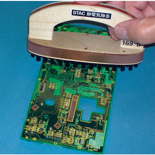 카탈로그 품번:STAC169-B 특징:●기판 제조시의 날아 솔더의 솔더 볼 제거, 이물 제거에 필요한 반발력, 제전 효과가 있습니다. ●악수 부분 어스 기능 첨부입니다. 용도: ● 인쇄 회로 기판의 솔더 볼 제거, 이물질 제거, 정전기 제거 등. 사양:●전장(mm):120●털길이(mm):10●모폭(mm):30●브러시길이(mm):115●선경(mm):0.3●표면저항치(Ω):10[[의 2승]](Ω・cm)●타입:무늬가 있는 코반형 ●모재:스트롱 카본섬유 나무, 구리 테이프 ● 모재 : 강한 탄소 섬유