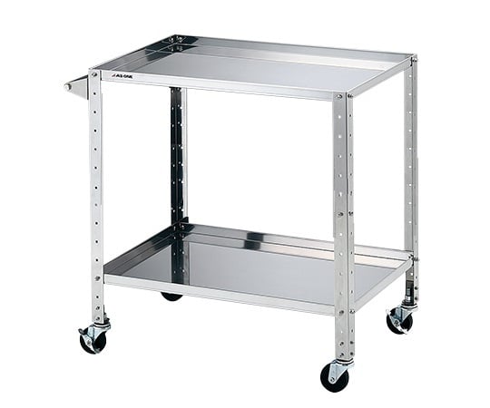 중량물의 운반을 할 수 있는 견고한 스테인리스 왜건입니다. 무거운 측정기 등도 탑재, 운반할 수 있습니다. 내약성・방청성・내구성이 뛰어납니다. 천판・선반판은 전락 방지의 테두리 첨부입니다. 크기 (mm): 830×510×809 무게 (kg): 17 재질:스테인리스(SUS430) 유효 작업 치수: 750×500mm 캐스터:φ75mm(대각 스토퍼 첨부) 선반 간격: 620mm 선반 널 설치 ​​피치: 50mm 내하중: 50kg/단 총 내하중 약: 100kg 조립식
