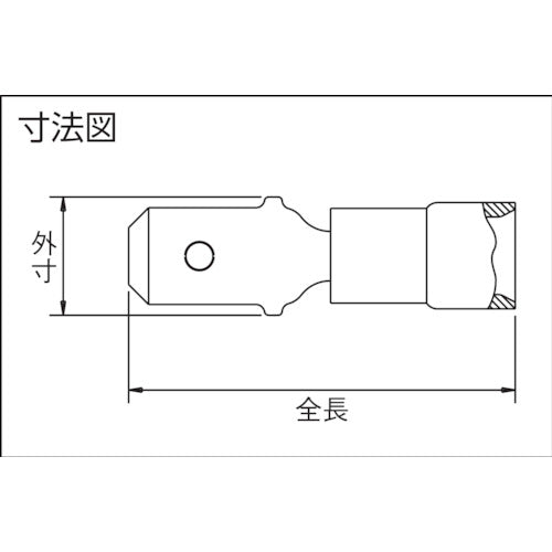 카탈로그 품번:EDV14-250M-Q 특징:●비닐로 절연된 수형의 압착 단자입니다. 용도 : ● 전선 연결에. 사양:●전선 접합 범위 선([[MM2]]):1.5~2.5●전선 접합 범위 AWG:16~14●색:청●외경 치수(mm):7.87●스터드 직경(mm):없음 ●전체 길이(mm):24.3●내 치수(mm):없음 ●형상:수컷●JIS 규격 0●탭 사이즈:.250×.032●추천 박리선 길이(mm):7.1●외형치수(mm):7.87 재질/마무리:●본체:구리●피복:비닐