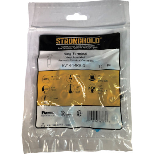 스트롱 홀드 비닐 절연 피복 부착 압착 단자(원형) 전선 사이즈: AWG16~14/1.25~2sq 설치 나사: M6 25개들이 EV14-14RB-Q EV14-14RB-Q 1봉투
