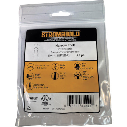 스트롱 홀드 비닐 절연 피복 부착 압착 단자(세폭 선개형) 전선 사이즈: AWG16~14/1.25~2sq 설치 나사: M5 25개들이 EV14-10FNB-Q EV14-10FNB-Q 1봉투