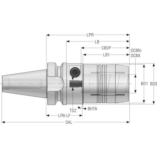 카탈로그 품번:BT30TFADB-HCR12-069 특징:●테이퍼 페이스(2면 구속) 주축용 홀더입니다. 사양:●BD1(mm9:42.0●BD2(mm):44.5●DCBN(mm):12.0●DCBX(mm):12.0●LB(mm):47.0●LF(mm):33.0●LFN(mm):23.0●LPR(mm):69.0●OAL