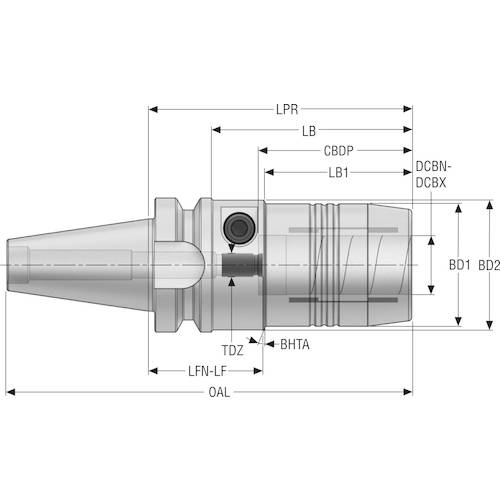 카탈로그 품번:BT30ADB-HCR12-069 특징:●고강성 유압 척입니다. 사양:●BD1(mm):42.0●BD2(mm):44.5●LB(mm):47.0●OAL(mm):117.4●TDZ:M8×1