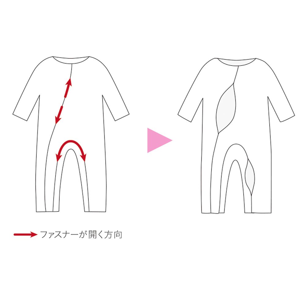 위 왁스·요관용 카테터 등을 붙인 채로도 개호가 쉬운 양쪽 개방 지퍼 타입입니다.