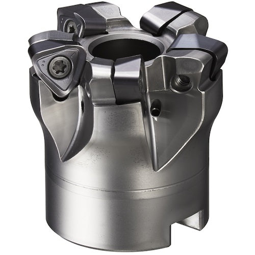 카탈로그 품번:EXSKS-6063R-07-22 특징:●Max.ap=2mm●강도와 예리함을 양립한 고이송 가공이 가능합니다. 용도: ● 고이송용. 사양:●날수 CICT(장):6●절삭 직경 DC(mm):63●적합칩:WNMU070620ZER-PM●날 직경(mm):63●날수(매):6●보어 타입 밀링
