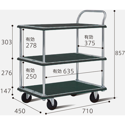 댄디 스틸 대차 댄디 시리즈 ECO 타입 DLE 3단 테이블 편 핸들식 W710×D450 DME-BT3-DX 1대