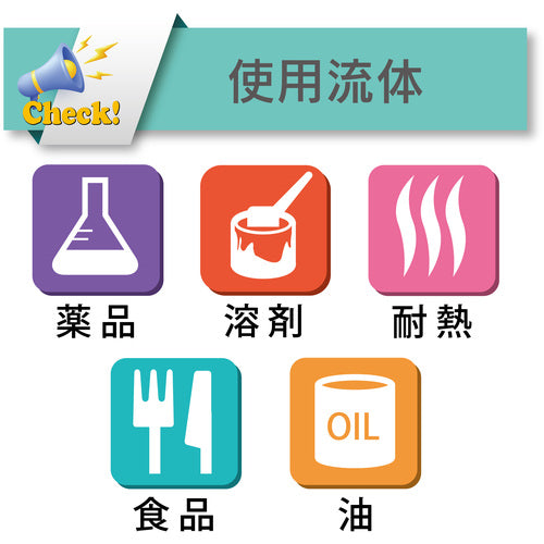 카탈로그 품번:FF-15-2 특징: ●내관이 4불화계 불소 수지로 내약품 ・ 내용제성이 뛰어나 폭넓은 용도에 대응할 수 있습니다. ● 적층 일체 구조이기 때문에 단층의 불소 튜브에 비해 부드럽고 취급하기 쉽습니다. ●비점착・발수성이 뛰어난 내면(발수각 96°)은, 유체 수송 효율이 좋고, 유체도 남기 어려우므로 세정이 간단합니다. ●투명도가 높고, 유체의 확인을 할 수 있어 안심입니다. ●【투명성】 투명도가 높고, 호스의 내면이 더러워지기 어렵기 때문에, 유체의 확인이 가능합니다. ●【법적합】 식품위생법 적합(PL 제도), FDA(미국 식품의약품국) 등록품, RoHS2 수정 규제 적합으로 안전・안심입니다. 용도: ● 약품, 화장품, 식품, 내유, 내열 배관용. 사양:●길이(m):2●내경(mm):15●외경(mm):22●사용압력(MPa):0~1.0(23℃), 0〜0.5(80℃)●허용굽힘반경(mm이상):105●사용온도범위:-20〜80℃●식품위생법(영화2년 [R2]] No.25486등록 ●색:내츄럴 투명(이미지 라인들이) 재질/마무리: ●주재질:4불화계 불소 수지(변성 ETFE), 폴리우레탄 수지 ●보강재:폴리에스텔사 주의:●안전면에서의 배려가 필요한 용도에 대해서는, 사용자님께 사전에 확인해 주십시오. 체내에 이식, 주입하는 용도, 혹은 체내에 일부가 잔류할 우려가 있는 용도에는 사용하지 말아 주세요. 의료 용도에는 사용하지 마십시오. ● 본 불소 호스는 불소 수지를 최내층에 이용하고 있어, 가솔린 등의 연료유나 톨루엔 등 용제의 내성을 가지고 있습니다만, 연료 배관용으로는 사용하지 말아 주세요. ●인화성 유체(분체를 포함한다)의 사용에 있어서는 정전기 저감을 위해서, 호스에의 금속선의 감김 접지(접지 처리)를 추천합니다. ●본 불소 호스는 적층 구조이기 때문에, 내층에 유체 내성이 있어도 사용 조건(고온, 고압 등)에 의해 내층을 유체가 투과해, 중간층·외층이 열화, 팽윤하는 경우가 있습니다. ●유체의 특성이나 조건에 의해, 내층이 마모・박리・용융 등하는 경우가 있으므로, 사용 전에 충분히 확인해 주십시오.