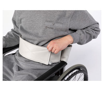 ●화장실 불가 ・의자・휠체어에 앉아 있을 때의 자세 유지에. 8자 벨트로 몸을 등받이에 단단히 고정.