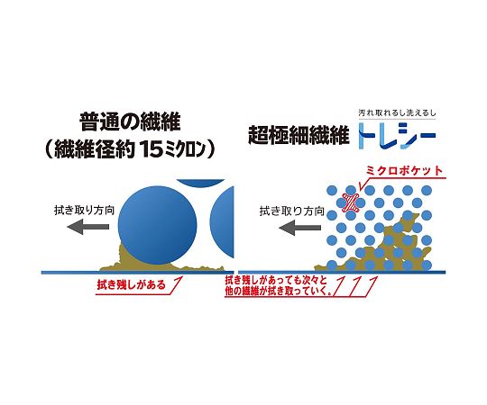 보통 섬유로는 잡히기 어려운 먼지, 피지 얼룩에서도 초극세 섬유(단면적비로 머리카락의 약 250분의 1의 얇음)가 더러움 속에 들어가기 때문에 물 닦아만으로 확실히 떨어뜨릴 수 있습니다.