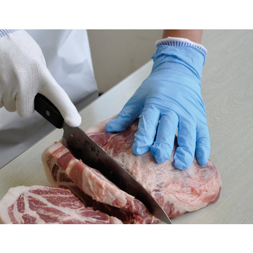 카탈로그 품번:529-SS 특징: ●기름에 강하고, 내마모성이 뛰어난 니트릴 고무제의 일회용 장갑입니다. ● 파우더 프리 (분말 없음) 타입입니다. ●식품 위생법에 근거하는, 식품·첨가물 등의 규격 기준(1950년 후생성 고시 제370호)에 적합하고 있습니다. 용도: ● 정밀, 약전 부품 취급. ● 식품 가공. 사양:●색:블루●사이즈:SS●전장(cm):25.0 ●손바닥 주위(cm):16.0 ●중지 길이(cm):7.4 ●두께(mm):약 0.09 ●가루(있음・없음):없음 ●식품 위생법:적합 ●좌우의 구별:좌우 겸용 ●식품 위생법 적합품 재질