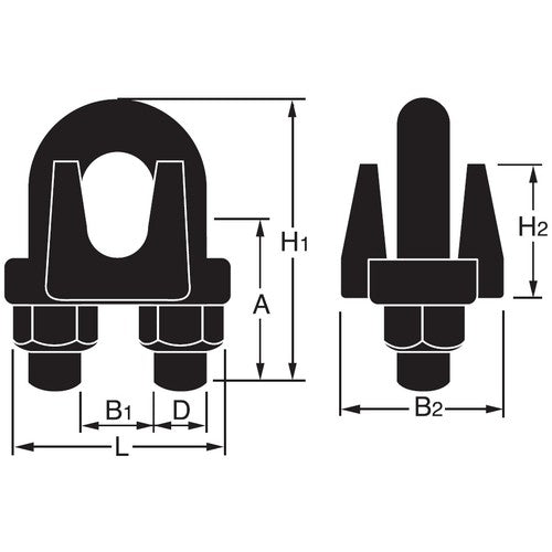 카탈로그 품번:B-1801 특징:●물 주위에 최적인 스테인리스제입니다. ● 와이어 로프를 통해 양쪽 너트를 조여 아이 가공을 할 수 있습니다. 용도: ● 와이어 로프의 말단 가공에. 사양:●적합 로프 지름(mm):2●A(mm):10●D(mm):M3●L(mm):13●B1(mm):4●B2(mm):14●H1(mm):18●H2(mm):11●스테인리스 와이어 클립 2mm 재질/마무리에 사용 하고 있지 않습니다.