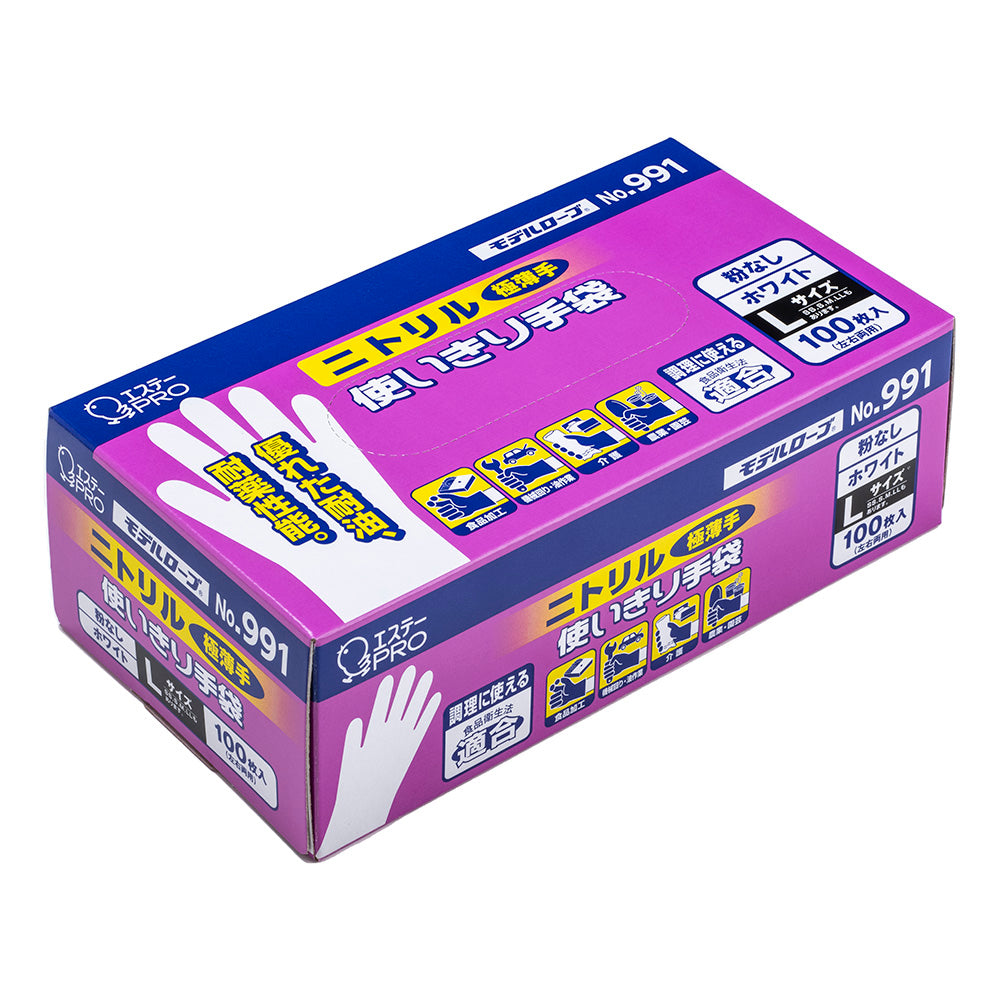 니트릴 사용 장갑(모델 로브) 화이트 L 1상자(100장입) No.991 1상자(100장입)