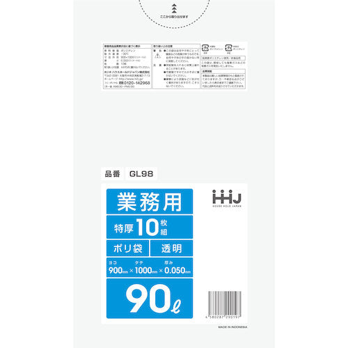 하우스 홀드 폴리 봉투 90L투명 10장 0.050 GL98 1봉