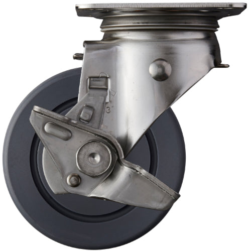 해머 스테인리스제 플레이트식 캐스터 플레이트식 스테인리스 캐스터 자재(스토퍼 부착) 바퀴 직경 100mm MC나일론 S 시리즈 313S-MCB100 1개