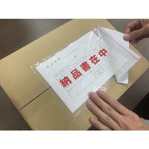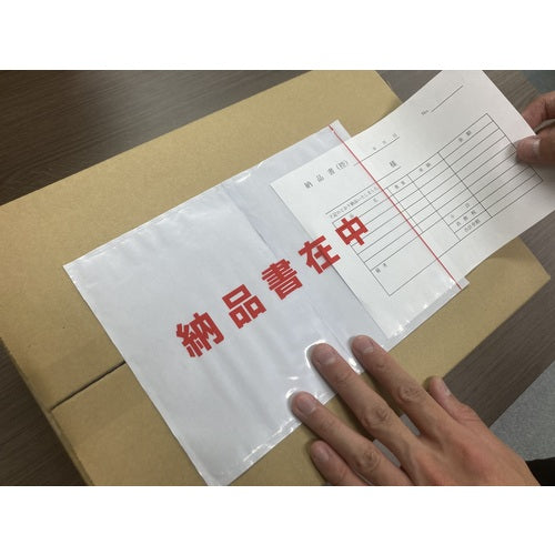 카탈로그 품번:PA-051T 특징:●포켓 타입이기 때문에, 붙이고 나서의 전표의 출납이 자유롭게 실시할 수 있습니다. ●A5나 A42절 크기의 전표·판촉물등이 그대로 들어갑니다. 용도: ●상품과 동시에 발송할 수 있는 전표 넣어에. (납품서나 청구서 등) 사양:●표시 내용:납품 서재중 ●세로(mm):175●가로(mm):250●PE 두께(mm):0.05 재질/마무리:●폴리에틸렌(PE)