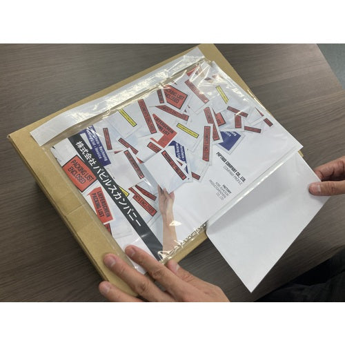 카탈로그 품번:PA-004T 특징:●완전 밀봉 사양 때문에, 붙이고 나서 전표가 떨어지는 걱정이 없습니다. ●표면 재봉틀 가공에 의해 도착 후의 전표 취출을 간단하게 실시할 수 있습니다. ●A4 사이즈의 전표등이 그대로 들어갑니다. 용도: ●상품과 동시에 발송할 수 있는 전표 넣어에. (납품서나 청구서 등) 사양: ●표시 내용: 무지 ●세로(mm):250 ●가로(mm):315 ●PE 두께(mm):0.05 재질/마무리: ●폴리에틸렌(PE)