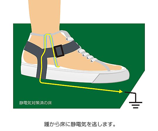 작업 신발에 장착하는 것만으로 정전화와 동등한 효과를 얻을 수 있습니다. (안전화에도 사용할 수 있습니다)
