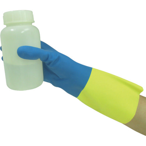 카탈로그 품번:268-L 특징:●천연 고무제로 부드럽고, 표면에 클로로프렌 코팅을 실시하고 있기 때문에 광범위한 약품에 대해 뛰어난 보호 능력을 가지고 있습니다. ●손가락・손바닥에 미끄럼 방지 가공을 실시하고 있으므로 그립성이 뛰어납니다. 사용: ● 화학제품 취급. ● 실험 ● 어업 · 농업. ● 가정에서의 물 일 등. 사양:●색:손부 블루/소매부 옐로우