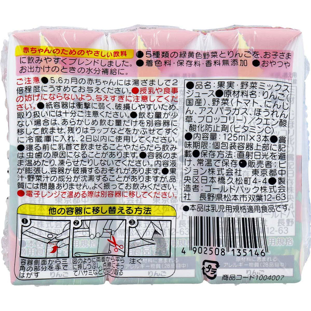 ※ 비둘기 종이팩 베이비 음료 녹색 노란색 야채 & 사과 100 125mL×3개 팩 1개