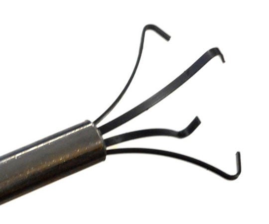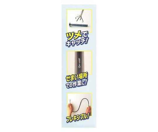손이 닿기 어려운 어지러운 장소에서 작은 부품을 픽업에. 발톱으로 잡는다. 어지러운 장소에서 일하기. 유연한 타입. 4개 손톱으로 자석에 붙지 않는 경량 부품등을 확실히 캐치. 전체 길이: 약 610mm 중량:약 70g 4개 손톱 플렉시블 타입 사용방법 1. 수중 피스톤을 누르면 팁에서 발톱이 나오고 열립니다. 2. 피스톤을 놓으면 손톱이 닫히고 되돌아갑니다. 주의 본래의 목적, 용도 이외에는 사용하지 마십시오. 필요 이상으로 강한 힘을 가하지 마십시오. 본체를 물에 붙이면 녹의 원인이 됩니다.