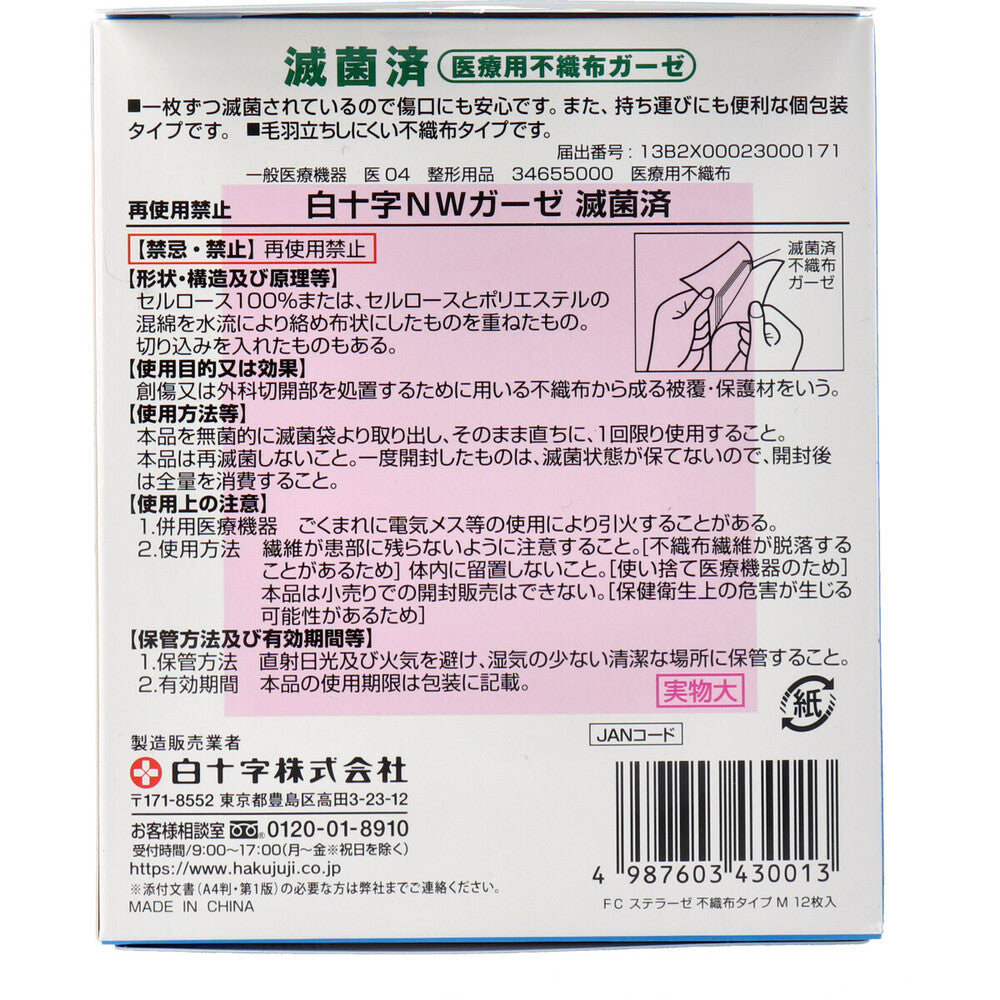 패밀리 케어 FC 스테라아제 부직포 타입 의료용 부직포 거즈 M사이즈 12장입 1개