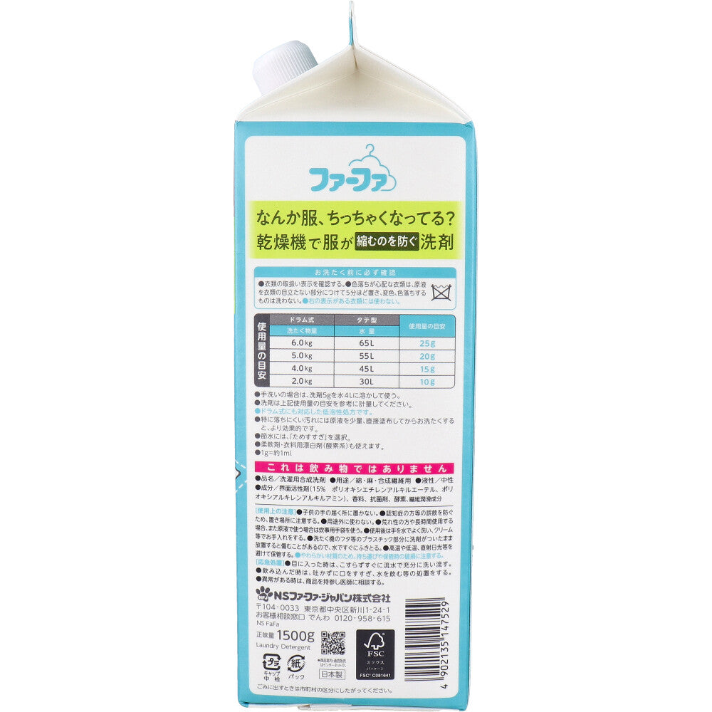 파파 건조기로 옷이 수축되는 것을 막는 세제 워터리 부케의 향기 리필용 1500g 1개