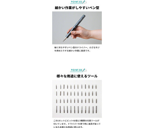 비트 48개와 9종류의 부속 툴이 붙어 있습니다. 본체 사이즈:약 15.8×180 mm