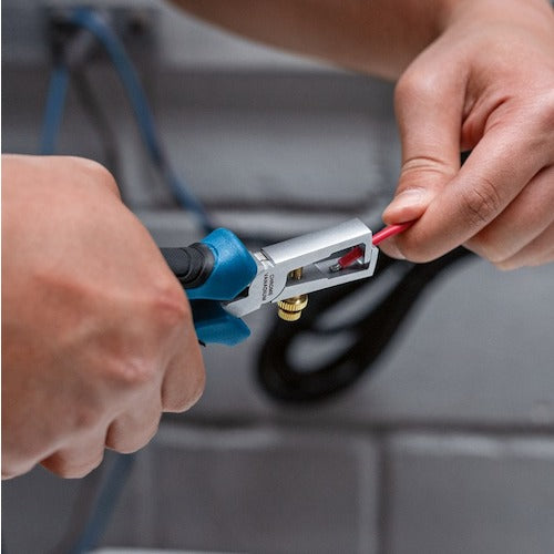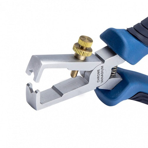 카탈로그 품번:1600A01V03 특징:●인간공학에 근거한 한손으로 잡기 쉬운 그립입니다. ●상부의 나사에 의해 간단히 임의의 지름을 조정 가능합니다. 용도 : ● 플라스틱이나 고무 등의 코팅 스트리핑에. 사양: ●사용 범위: 단면적 0-10mm2 ●본체 치수: 55×161×20mm 재질/마무리: ●크롬 바나듐/ABS