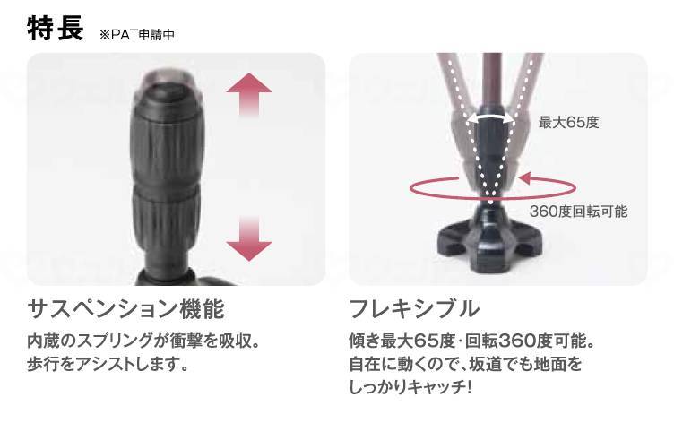 ○ 지팡이 끝이 자유자재로 움직이기 때문에 언덕길에서도 지면을 제대로 잡을 수 있습니다.