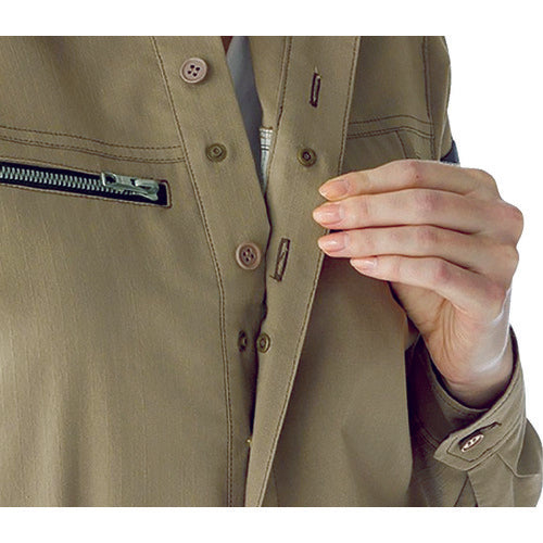 카탈로그 품번:VELS2539UE-9 특징:●여성용의 기능과 아름다운 실루엣을 양립했습니다. ● 버튼 사이에서 속옷이 보이지 않도록 표에서 보이지 않는 숨겨진 버튼을 추가했습니다. ● 신축성있는 원단을 사용하고 있습니다. ● 일본 유방암 핑크 리본 운동 대상 상품입니다. 용도: ● 작업 현장용으로. ● 건설업. ● 제조업. ●운수업. ●점검・정비. ● 물류. ● 이사. ● 건물 유지 보수. ● 청소. 사양:●색:챠콜●사이즈:9●옷길이(cm):66●가슴둘레(cm):98●대전 방지 작업복 JIS 적합품 재질/마무리:●폴리에스텔 80%,면 20%