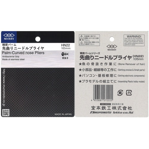 카탈로그 품번:HN22 특징: ●손바닥에 피트하므로 수중 감각 작업이 가능. 피로도 경감되어 작업 효율도 업. ● 끝이 정밀 마무리 때문에 극세 섬유 등의 세세한 작업도 가능합니다. 용도 : ● 어육 가공 공장에서 뼈 제거 작업에 최적의 플라이어입니다. 사양:●전장(mm):105●항균 코팅 그립으로 위생적.