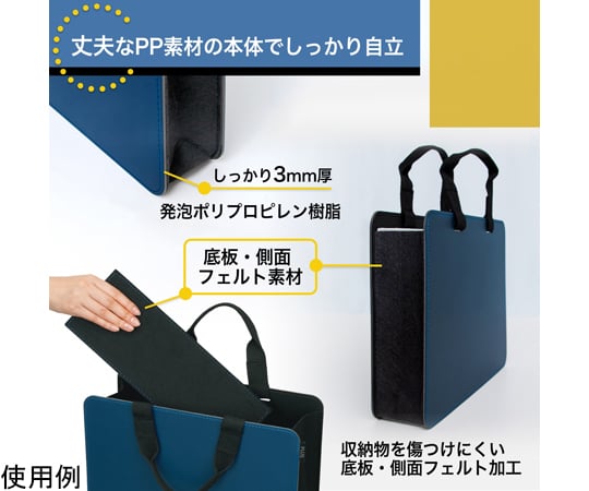 재질:본체・저판/발포 폴리프로필렌(PP)・펠트(폴리에스텔), 손잡이/폴리프로필렌