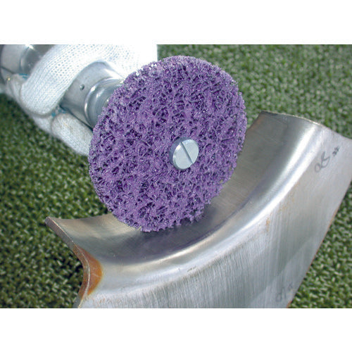 카탈로그 품번:NPS-10013 특징:●워크를 지나치게 깎아내지 않고, 표면만을 연마합니다. ● 막히지 않고 연마력이 우수합니다. ●종래품의 약 2배의 연마력으로 장수명입니다. 용도 : ● 페인트 벗겨, 녹 제거, 퇴적물 제거. ● 용접 작업 전후 처리. ●알루미늄・스테인리스・다이캐스트의 마무리 연마. 사양:●외경(mm):100●폭(mm):13●최고 사용 회전수(rpm):5800●색:보라●구멍 직경(mm):6●최고 사용 회전수:5800rpm 재질/마무리:●특수 극태 부직포 ●축:스틸 주의:●축은 별매입니다. ●작업 시에는 반드시 안전 모자, 안전 안경 등의 보호구를 착용하십시오. ●최대사용 회전수를 초과하여 사용하지 마십시오.