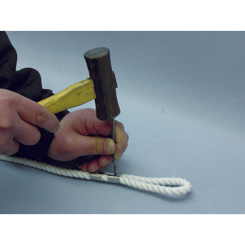카탈로그 품번:KJ19-1 특징:●로프 선단에, 간단하게 아이 가공(륜)을 만들 수 있습니다. 용도 : ● 로프의 끝에 고리가 필요한 장면에. 사양:●적합 로프 지름(mm):6 재질/마무리:●스테인리스(SUS304) 세트 내용/부속품:●맘보칸×2개, 로프 캐쳐×2개