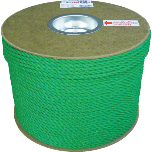 카탈로그 품번:PRE-103 특징:●경량으로 물에 강하고, 강력하고 쇼크에도 강한 로프입니다. 용도: ● 그물, 농원예, 인테리어 등. 사양:●색:녹색●선경(mm):6●길이(m):200●포장 형태:드럼 권 재질/마무리:●폴리에틸렌(PE)