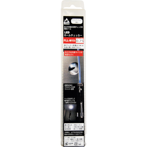 카탈로그 품번:FLL-M15-0.75 특징:●가공 구멍 내면의 마무리 상태등이나 크로스 구멍, 내경의 안쪽에 발생하고 있는 버나 작은 구멍의 안쪽에 버가 혼동되어 있지 않은지를 확인하는 공구입니다. ● 광섬유 소선을 채용하고 있기 때문에 내구성도 있고, 구멍 내 측면도 조명 할 수 있습니다. ●3단 전환(100%, 50%, 점멸)의 기능을 탑재한 LED 라이트로서도 사용할 수 있습니다. ● 헤드 부의 광섬유는 원하는 길이로 잘라 사용하실 수 있습니다. ● 다른 사이즈의 헤드로 교환 가능합니다. 용도: ●시판의 라이트에서는 확인하기 어려운 좁은 부분에. 사양:●밝기(lm):100●전원(V):단 4형 알칼리 건전지×1개(별매) ●전체 길이(mm):545●헤드 직경(mm):0.75●코드 길이(m):450 6 ●최대 점등 시간(h):6(점멸), 4(약), 1.5(강) ●최대 점등 시간:6시간(점멸), 4시간(약), 1.5시간(강) ●보호 등급:IPX4 세트 내용/부속품:●FLL-M15×1개, H450-0.75×1개 주의해: 별도 구입하세요.