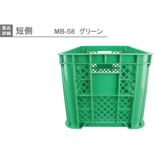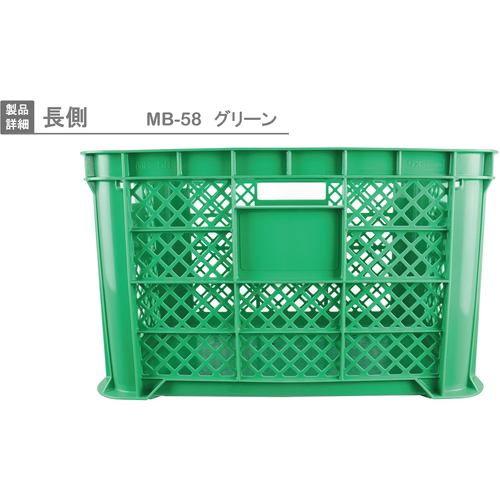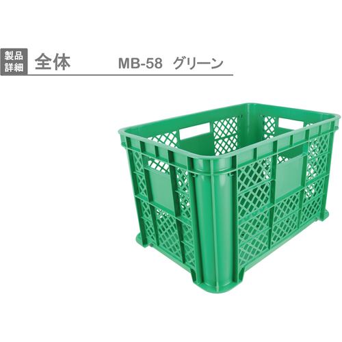 카탈로그 품번:MB-58 특징: ●통기성이 있는 메쉬 타입으로, 과실・야채의 채집・집하・선과・운반 등 산지로부터 시장까지의 용도가 넓은 컨테이너입니다. 용도 : ● 과일 · 채소의 채집 · 집하 · 선과 · 운반 등 산지에서 시장까지. 사양:●용량(L):57●색:그린