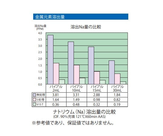 각종 금속 이온의 용출을 저감해, 박리를 억제한 바이알병입니다.