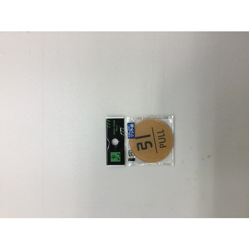 카탈로그 품번:WMS57-2 특징: ●방명이나 입구의 표시에 적합합니다. ● 매트 버전이므로 빛이 반사하기 어렵고, 뒷면 인쇄 때문에 문자가 사라지지 않습니다. 용도: ● 방명이나 용도의 표시에. 사양:●표시 내용:인 PULL●설치 사양:점착 테이프 ●세로(mm):50●가로(mm):φ50●두께(mm):2●색:메이플 ●타입:원형 ●설치 방법:붙이 타입(테이프 부착)