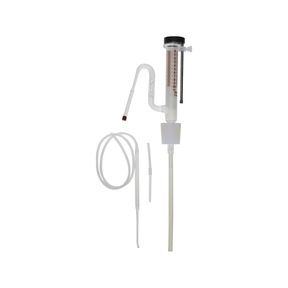 부속의 실리콘 마개에 맞는 용기와 접속시키는 것으로, 지정의 용량을 분주하는 것이 가능합니다. 시판되는 실리콘 마개와 고무 마개를 사용하거나 입구 튜브의 크기를 변경하여 다양한 종류와 용량의 용기를 사용할 수도 있습니다. 실린더 눈금에 포인터를 맞추는 간단한 용량 설정입니다. 코드 번호: 025140-10 분주 용량:1~10mL 실리콘 마개(No.): 10 색상: 화이트 접액부재질:유리・PTFE(4불화에틸렌) 라이프론 튜브 부속(연장 튜브) ※실리콘 마개 부착입니다. (삼각 플라스크는 부속되어 있지 않습니다.)
