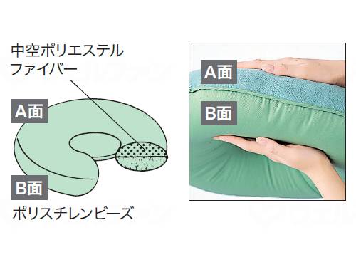 ○특수 비즈와 면의 이중 구조로 체압을 분산. 특수 비드의 통기성・이동성과 면의 탄력성을 겸비하고 있습니다.