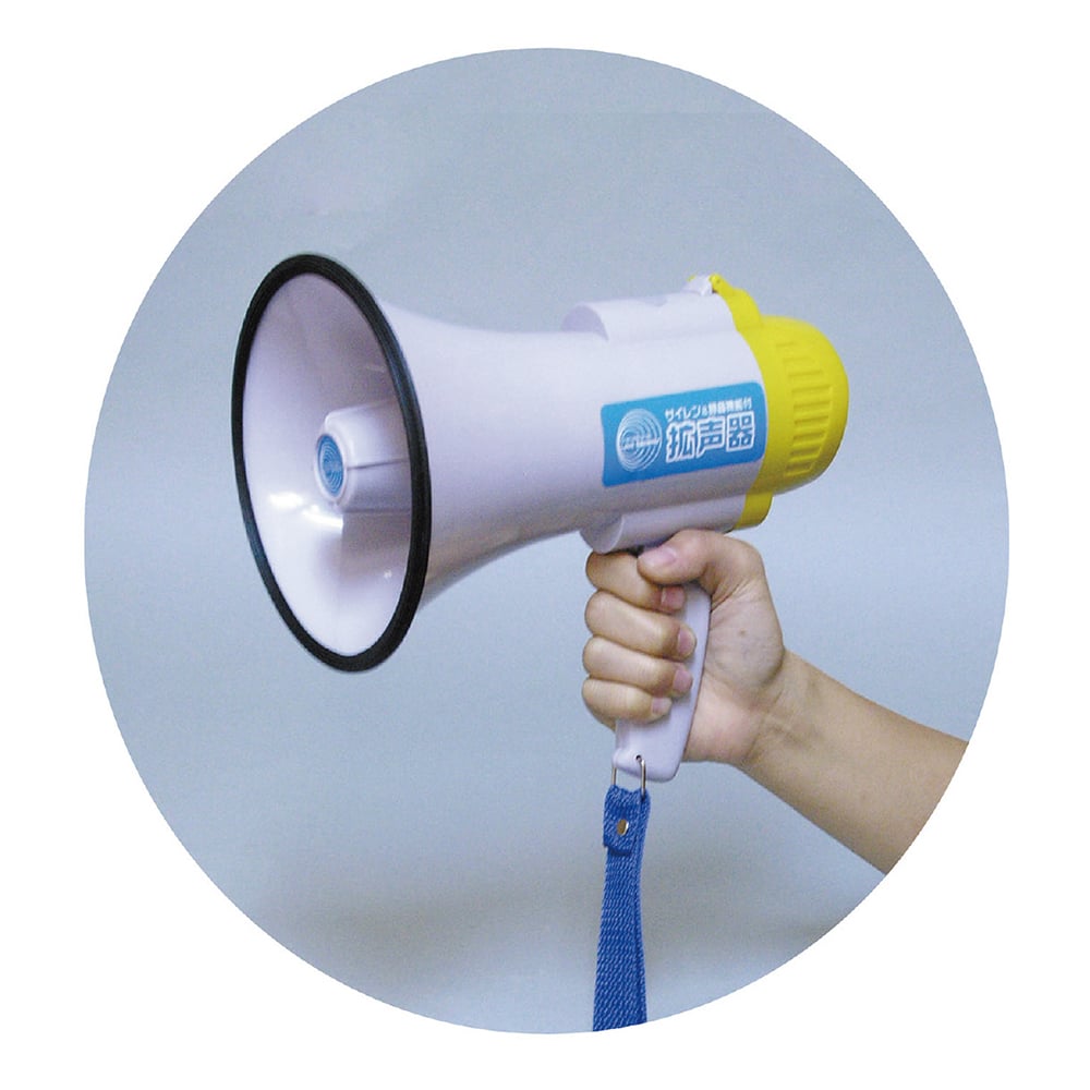 사이렌・녹음・재생 기능이 붙어 있습니다. 모형: 3900 사이즈(mm):φ155×250×210 재질: ABS 수지 전원:단 1 건전지×4개(테스트용 부속) 최대 출력: 10W